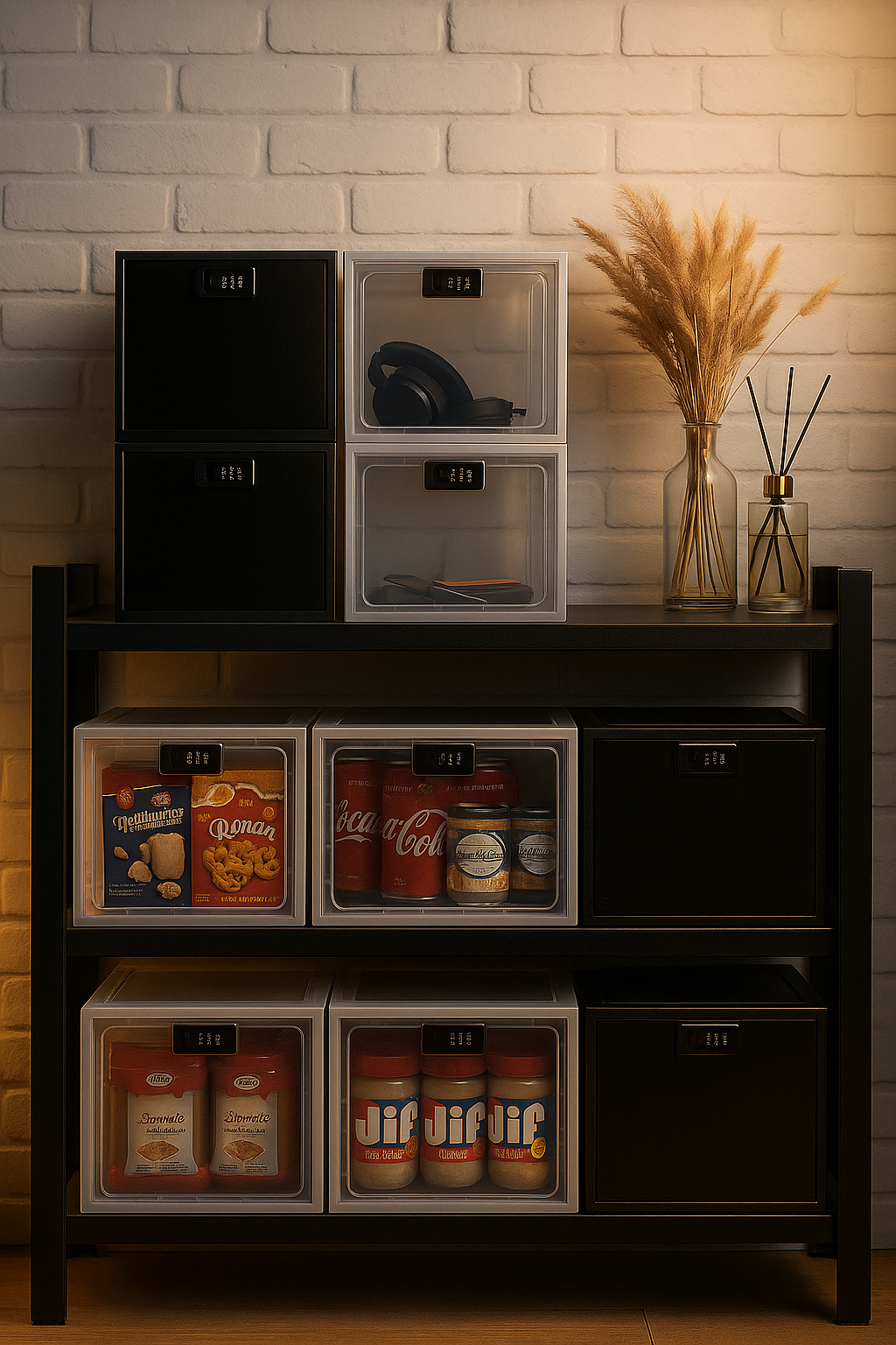 FitVault™ is a lockable fridge box that keeps your meals, eggs and protein shakes safe from “fridge thieves.”Clear walls so you see everything. 3-digit code so only you can open it.